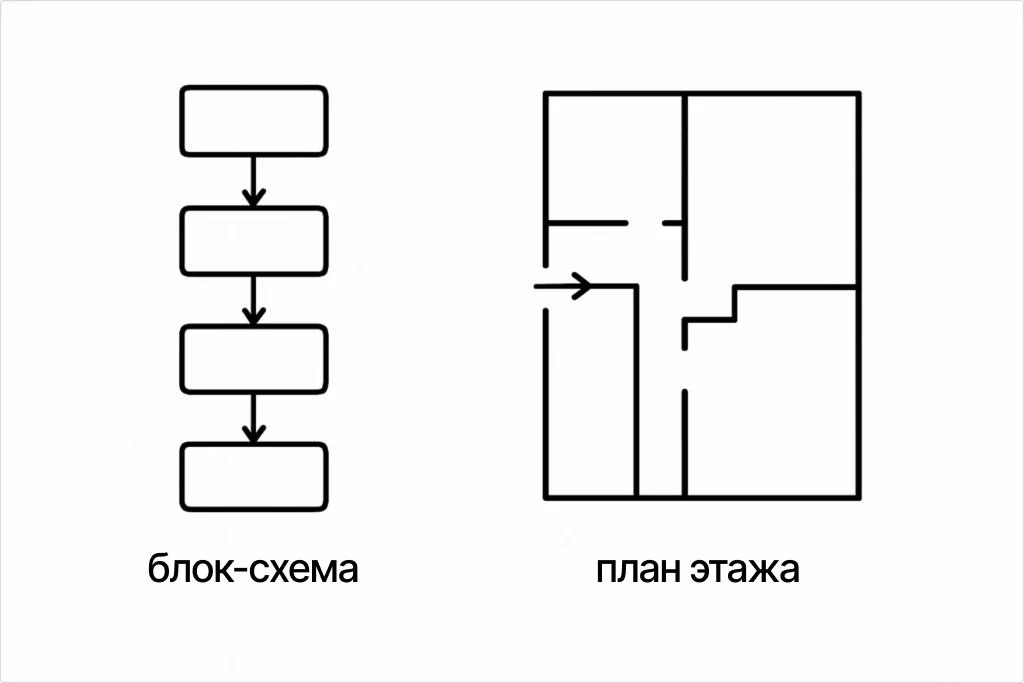 - Не усложняйте: прямоугольники и линии вместо детализированных элементов.