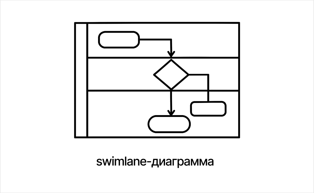 - Когда использовать: если нужно показать, кто, что и когда делает в рамках кросс-функционального рабочего процесса.