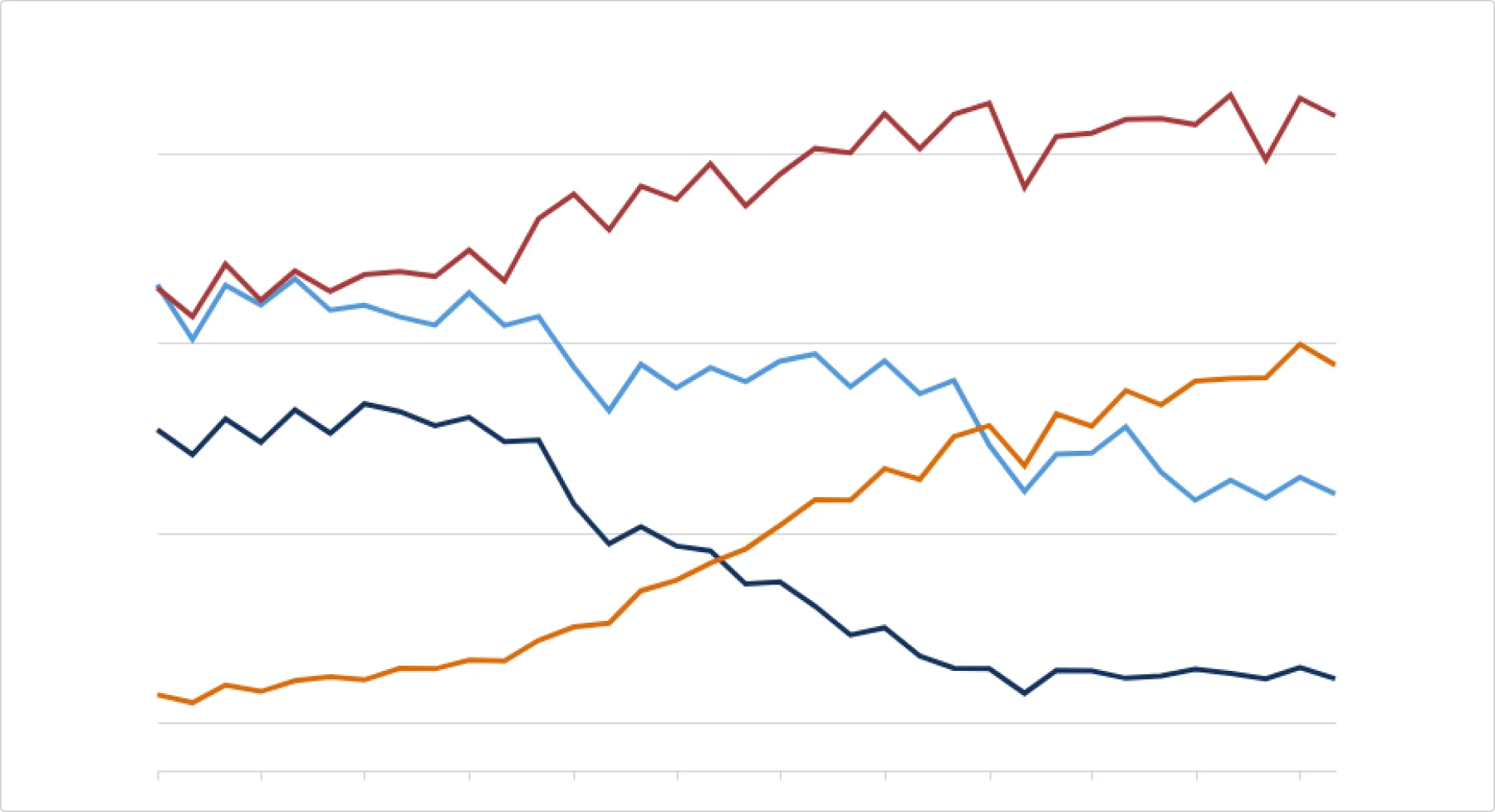 - Несколько серий: линейный график с максимум 4 линиями или несколько небольших графиков в одном масштабе.