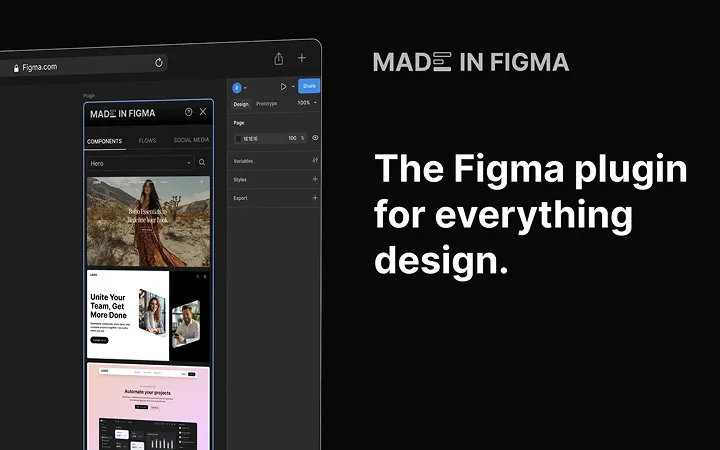 Недавно я нашел отличный плагин Made in Figma. Он позволяет быстро добавлять в файлы чистые, продуманные компоненты. Никаких лишних элементов, никакого беспорядка, только надежные UI-блоки, которые экономят время.