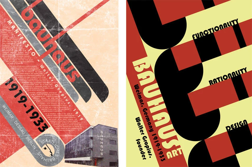 Вместо аккуратной модульной сетки — хаос: элементы сдвинуты, выравнивание «плавает», композиция выглядит неустойчивой. Но именно в этом хаосе рождается динамика. Например, постеры Берлинской школы дизайна часто строились на «сломанных» сетках, где заголовки и изображения будто спорят друг с другом за внимание.