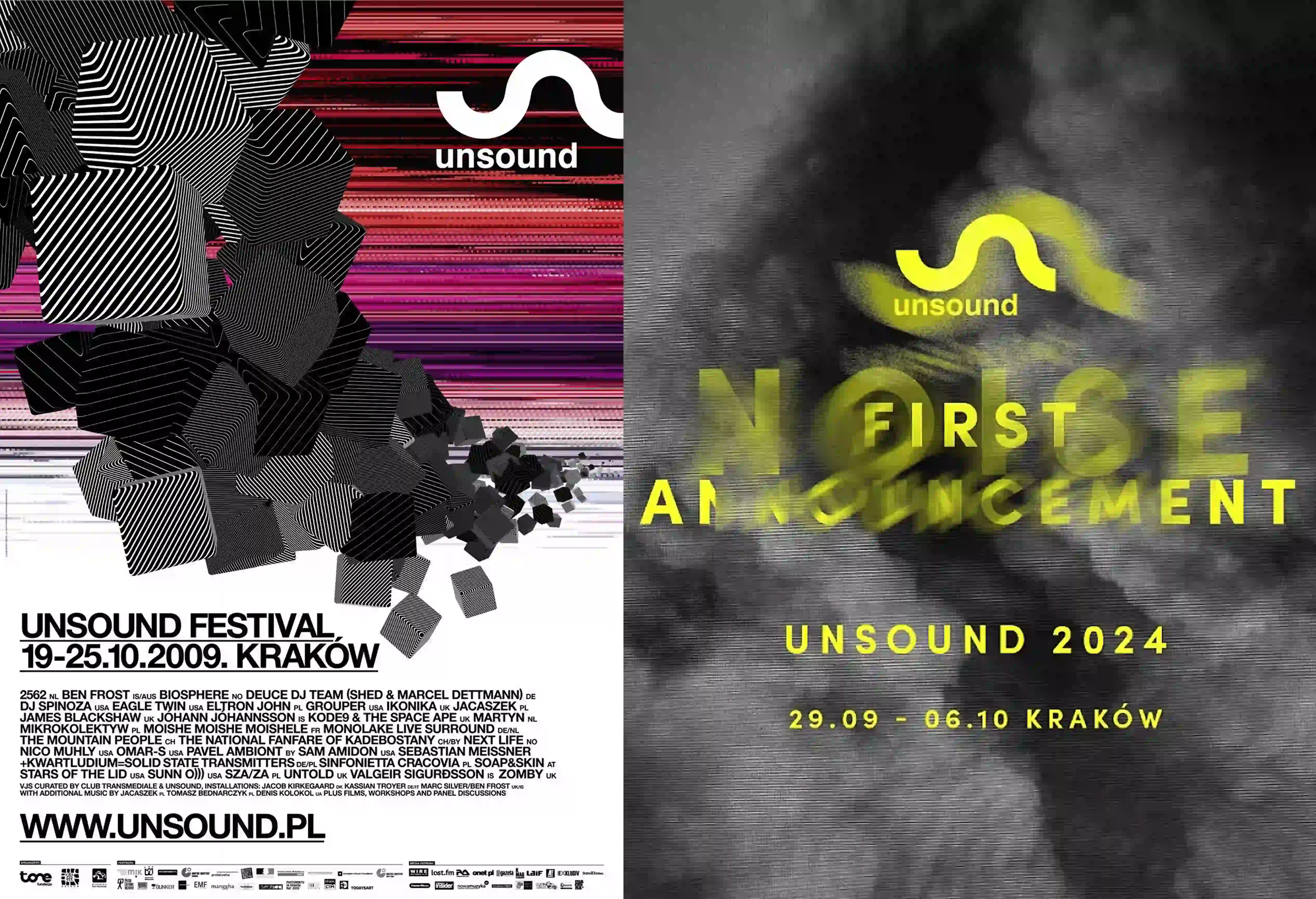 Неоновые оттенки, кислотные сочетания, намеренно «бьющие» по глазам палитры — все это часть антидизайна. К этому добавляются грубые коллажи: фотографии, вырезанные без аккуратного контура, пикселизация или разрывы, будто изображение не загрузилось до конца. Современный пример — многие постеры музыкальных фестивалей, которые сознательно используют кислотные градиенты и «рваный» монтаж.