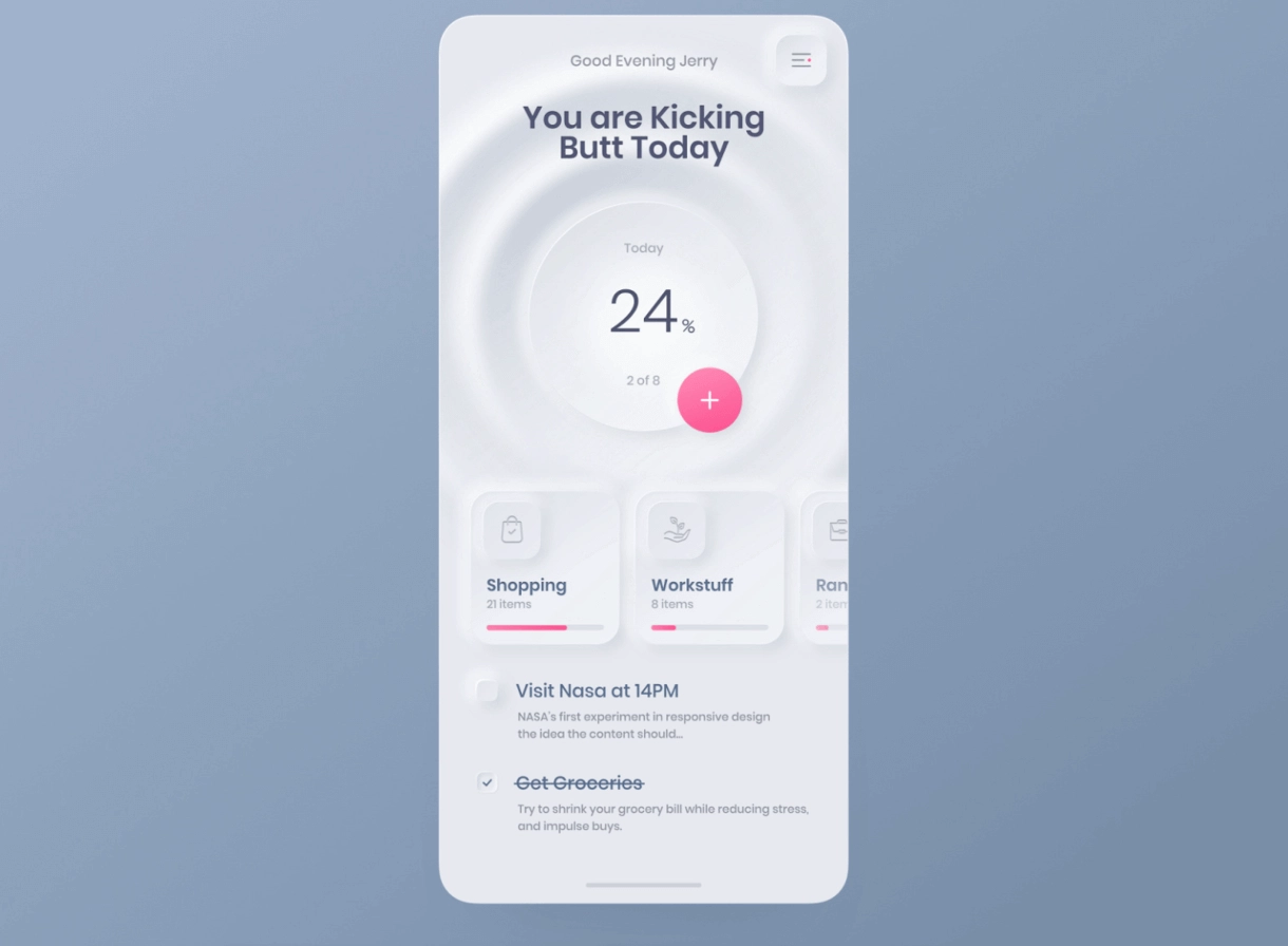 Неоморфизм объединил лучшие черты скевоморфизма и минимализма, создав новый визуальный язык — мягкий, объемный и технологичный. Он выделялся на фоне однообразных плоских интерфейсов и позволял дизайнерам экспериментировать с формами, светом и материалами.